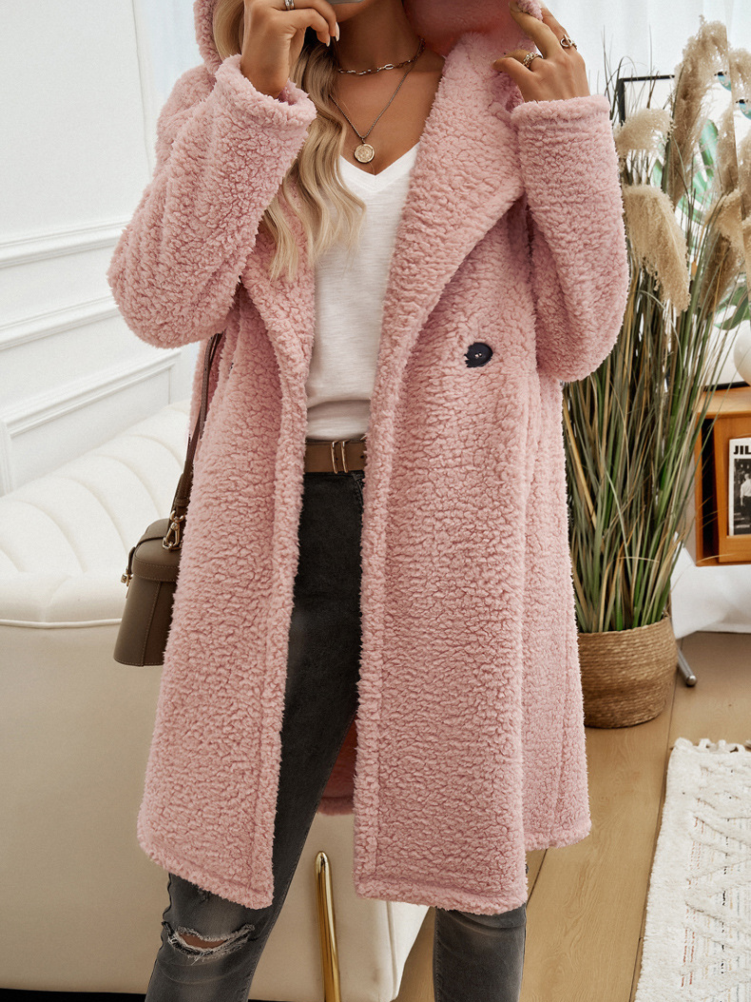 Sa coupe mi-longue structurée et son col à revers large apportent une touche d’élégance, tandis que sa texture pelucheuse invite à la détente. Parfait pour vos balades d’automne ou vos soirées d’hiver, il s’associe aussi bien à un jean qu’à une robe fluide.